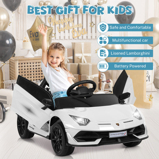 12V Powered Kids Ride on Car Toy with Remote Control, Licensed Lamborghini Sport Car for Girls Boys 3-5 Years Old, Electric Vehicle Car w/ Bluetooth, Fours Wheels