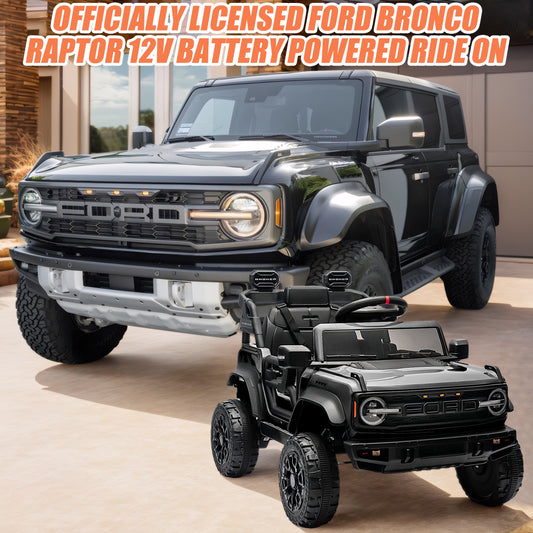 12V Powered Ride on Car, Ford Bronco Raptor Ride on Toys with Remote Control, Battery Powered Ride on Trucks with Bluetooth Music, LED Light, Kids Car Electric Vehicle for Boys Girls Gifts, Black