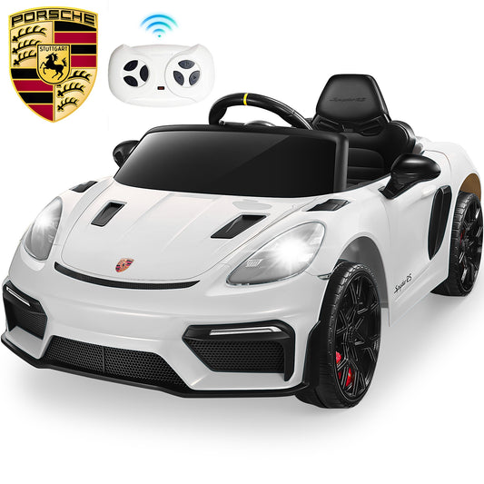 12V Kids Powered Ride on Car Toy, Electric Vehicle with Remote Control, Licensed Porsche 718 Spyder Sport Car for Grils Boys Ages 3-6, Bluetooth, 4 Wheel Suspension