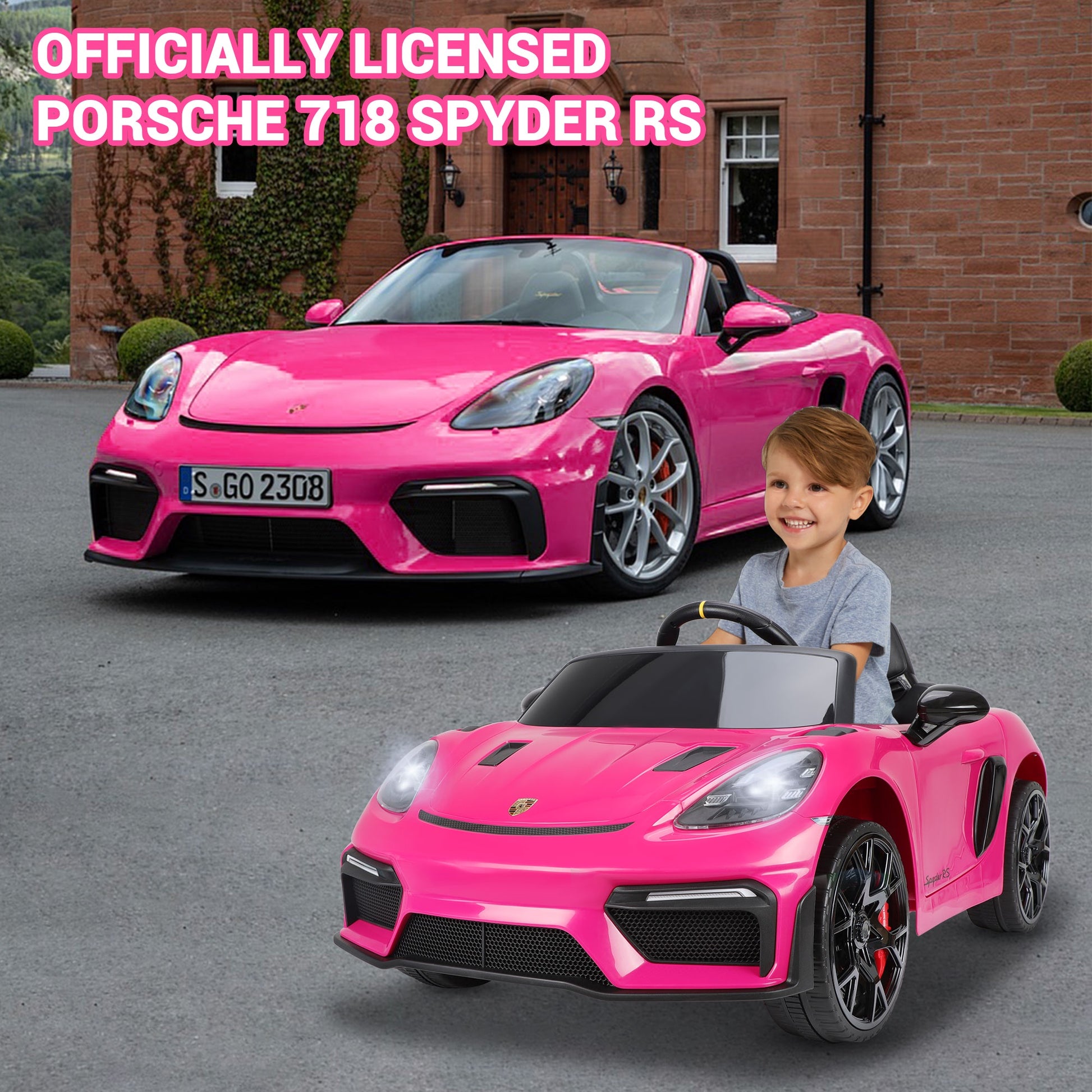 ??Let the dreams of young drivers begin with the officially licensed 12V Porsche 718 Ride on Car!