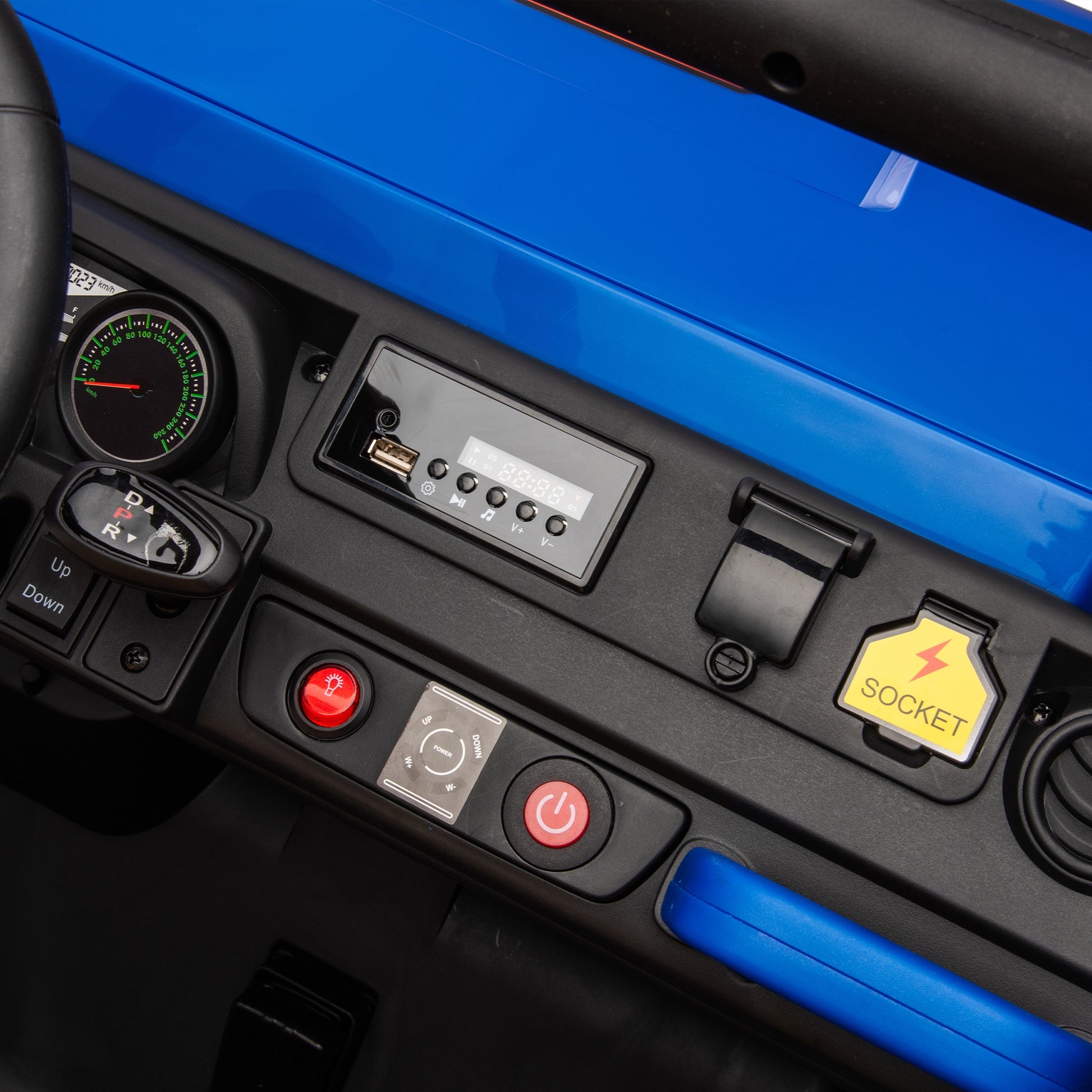 Get ready to embark on an adventure with your little ones! This 24V XXXL kids ride on car not only boasts a powerful design but is also packed with modern technology and safety features. Our kids' off-road ride on UTV comes equipped with parent remote control, true double-seat design, automatic tilt bucket, rear wheel shock absorption, soft start, portable handle, seat belts, LED lights, USB, MP3, Bluetooth, and horn functions, making it perfect for children aged 3-8. Whether it's day or night, this kids' ride on toy car offers endless fun and safety for children.