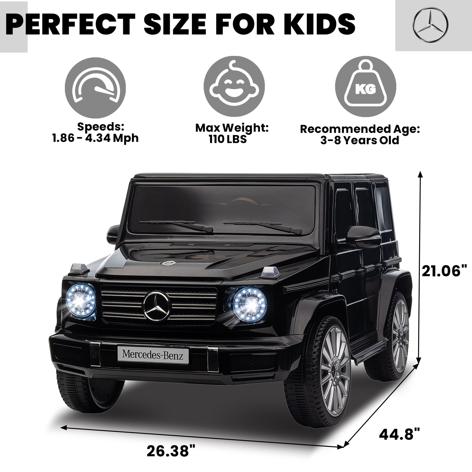 24V Ride On Cars with Remote Control, Licensed Mercedes Benz G500 Kids Electric Car for Boys Girls Gifts, Battery Powered Ride on Trucks Toys with Bluetooth, MP3, Music, Led Lights, USB, Black