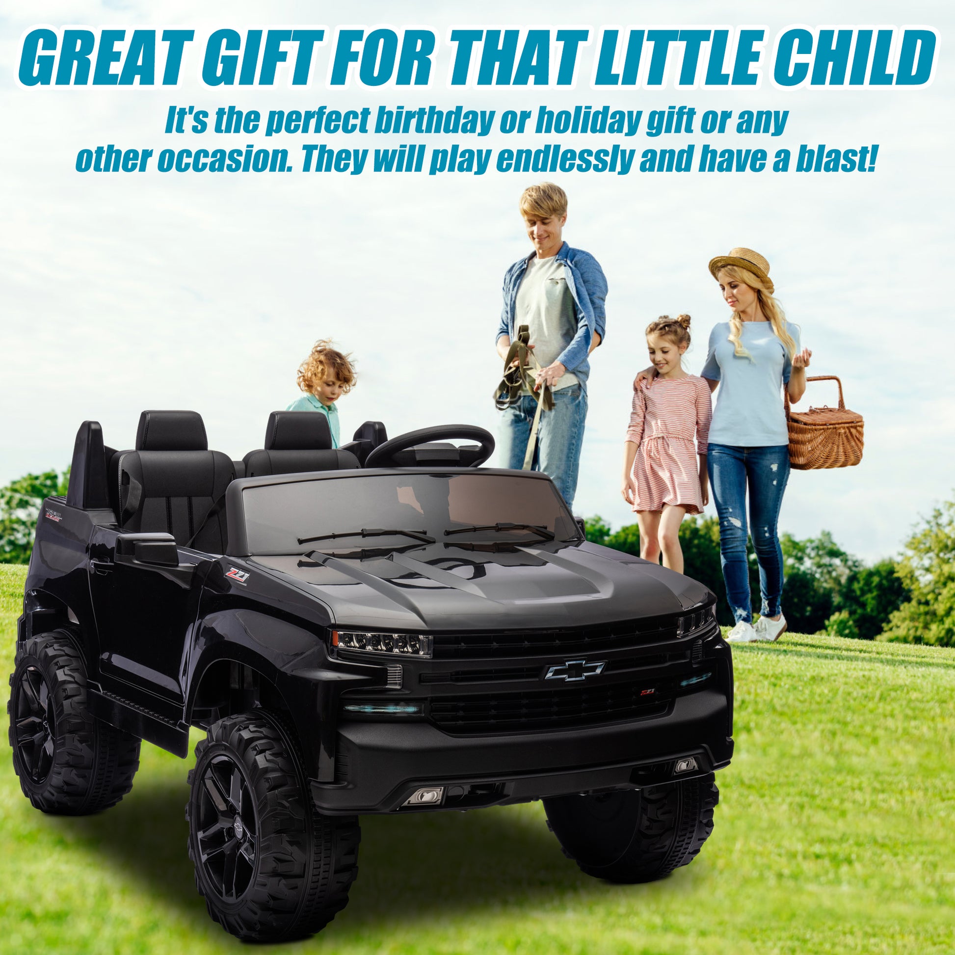 Chevrolet Silverado 24V Ride on Cars with Remote Control, 2 Seater 4 Wheels Kids Electric Cars with Bluetooth, LED Lights, Battery Powered Ride on Truck Toys for Boys Girls Christmas Gifts, Black