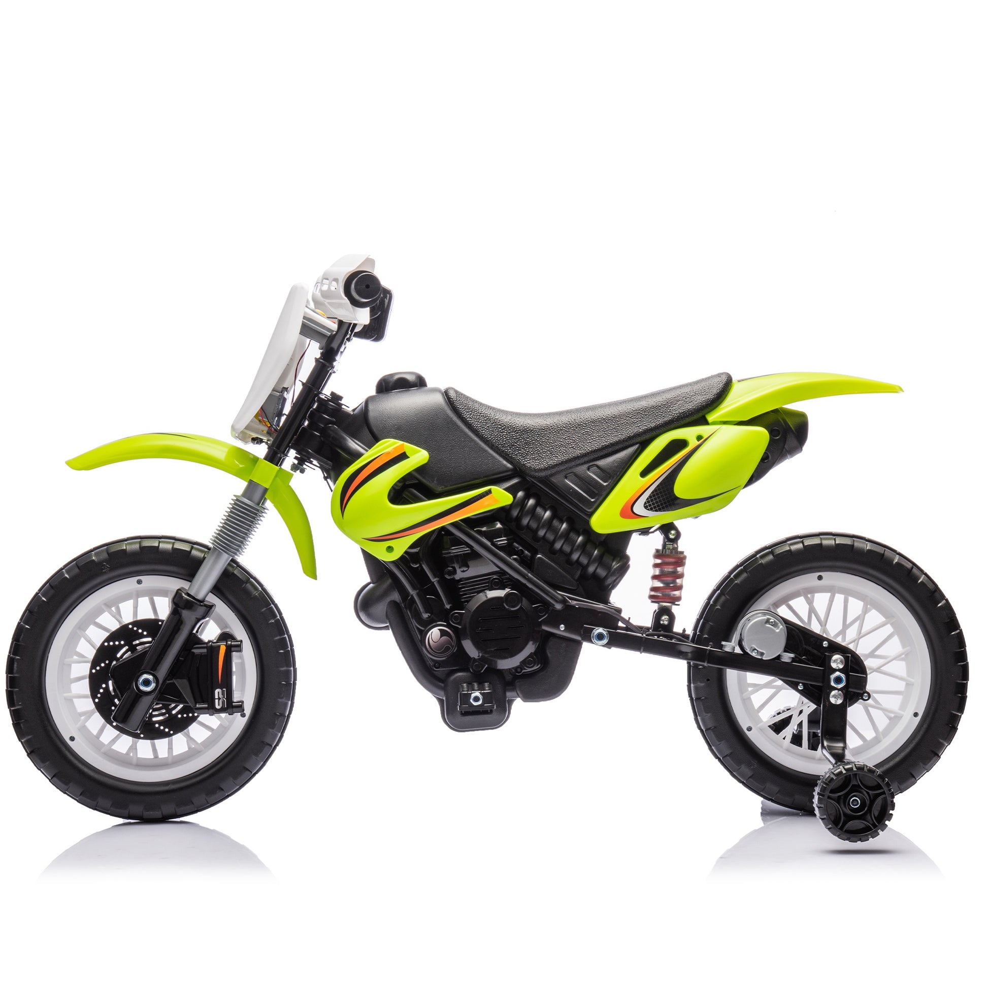 iRerts 12V Electric Dirt Bike with Twist Grip Throttle, Powered Ride on Motorcycle with 2 Training Wheels, Rear suspension, Ride on Toys Kids Motorcycle for Boys Girls Gifts Ages 3-8, Green