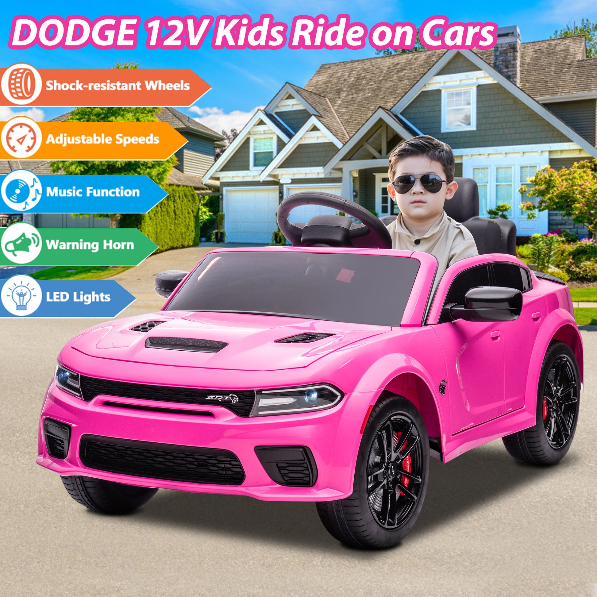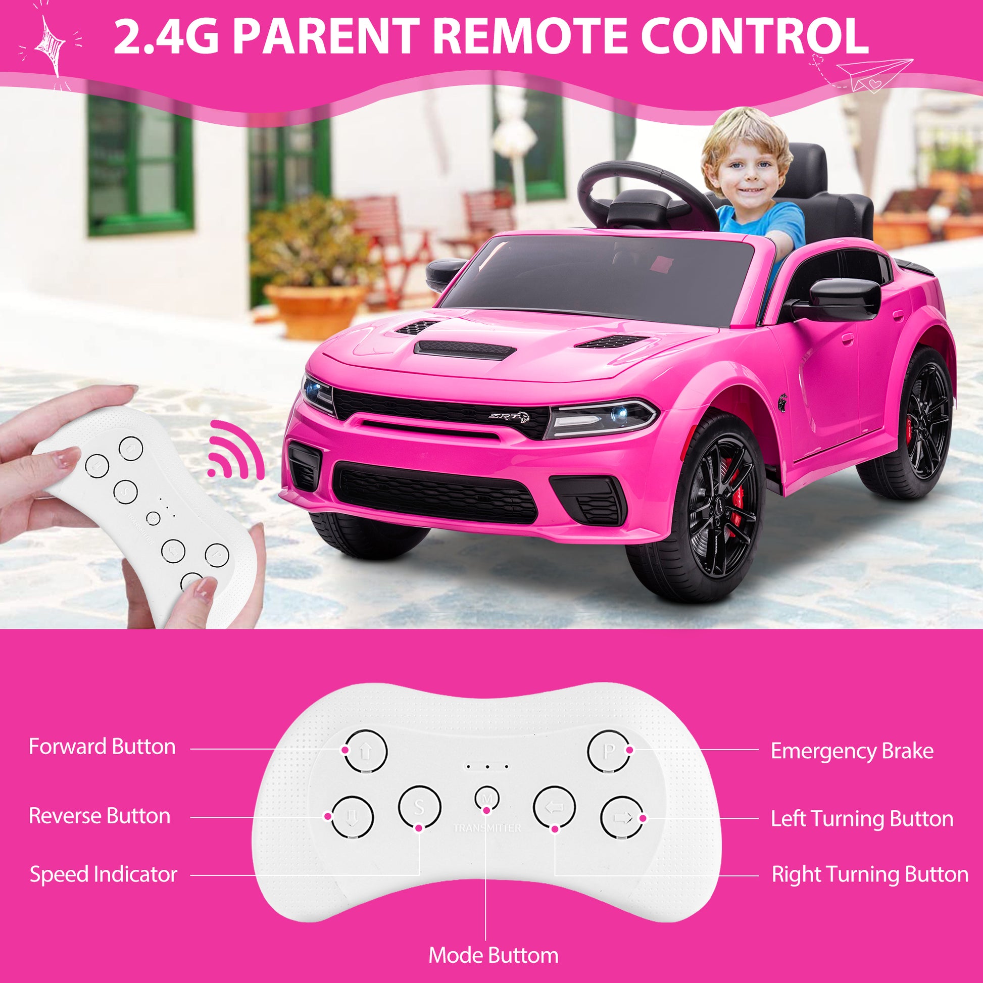 iRerts 12V Pink Dodge Charger Ride On Cars with Remote Control, Kids Ride on Toys with Bluetooth, Music, LED Light, USB, MP3, 4 Wheel Suspension, Electric Cars for Kids Boys Girls Birthday Gifts