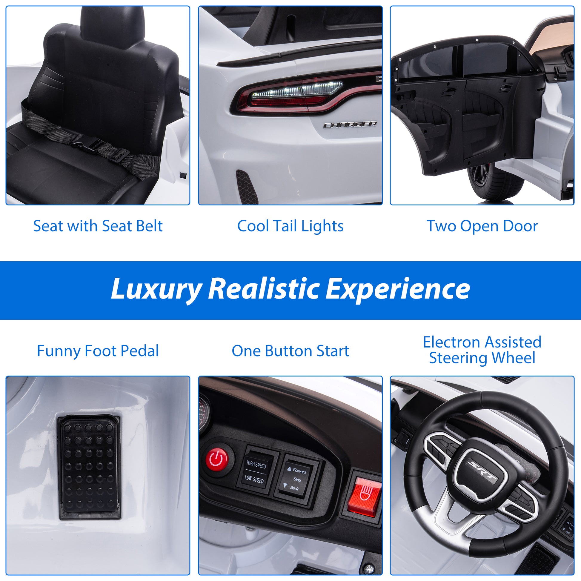 iRerts 12V White Dodge Charger Ride On Cars with Remote Control, Kids Ride on Toys with Bluetooth, Music, LED Light, USB, MP3, 4 Wheel Suspension, Electric Cars for Kids Boys Girls Birthday Gifts