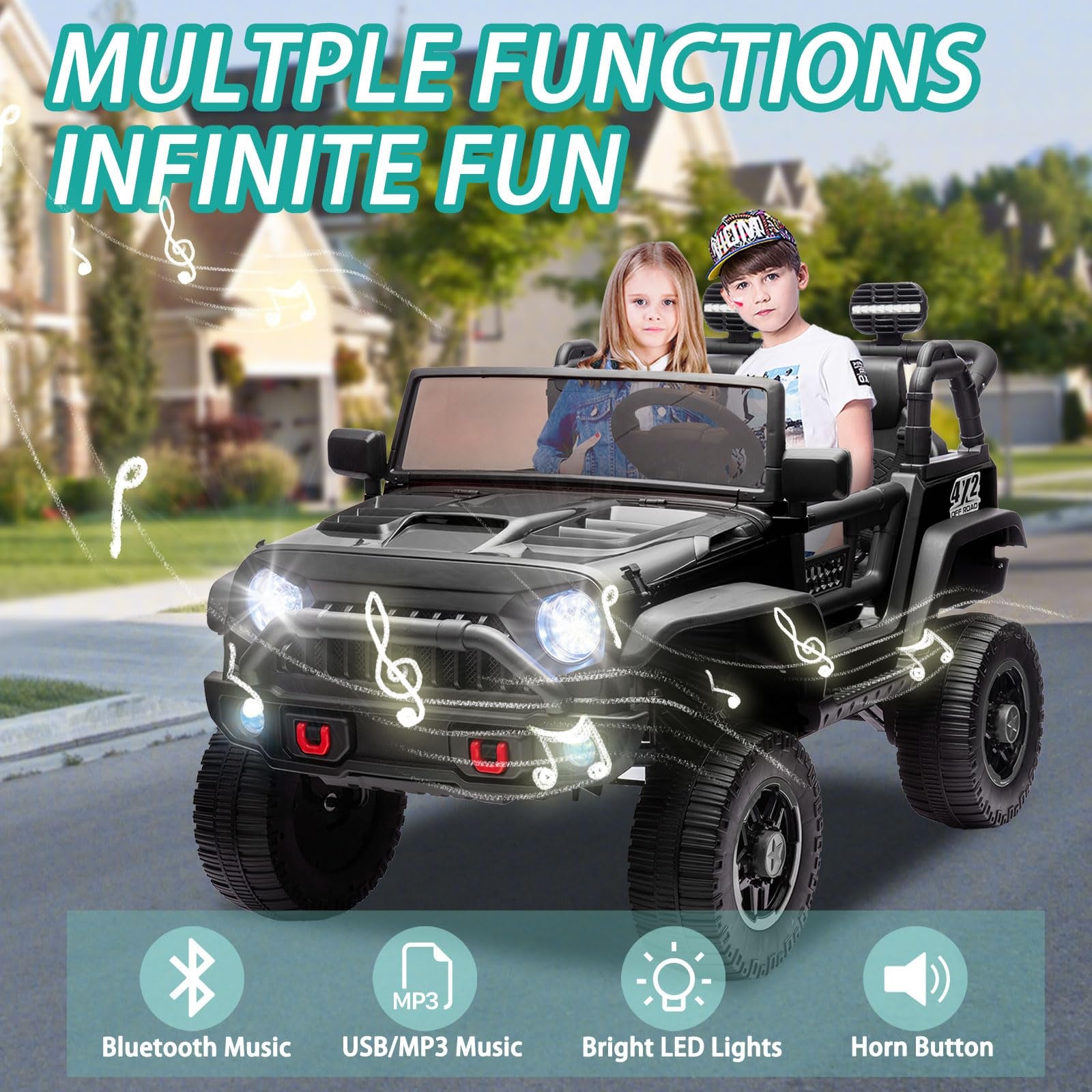 iRerts 24V 2 Seater Ride on Car, Powered Ride on Toys for Bid Kids Boys Girls Gifts, Kids Car Electric Vehicle with Remote Control, Music, Bluetooth, LED Light, USB/MP3 Port, 4 Wheel Suspension, Black