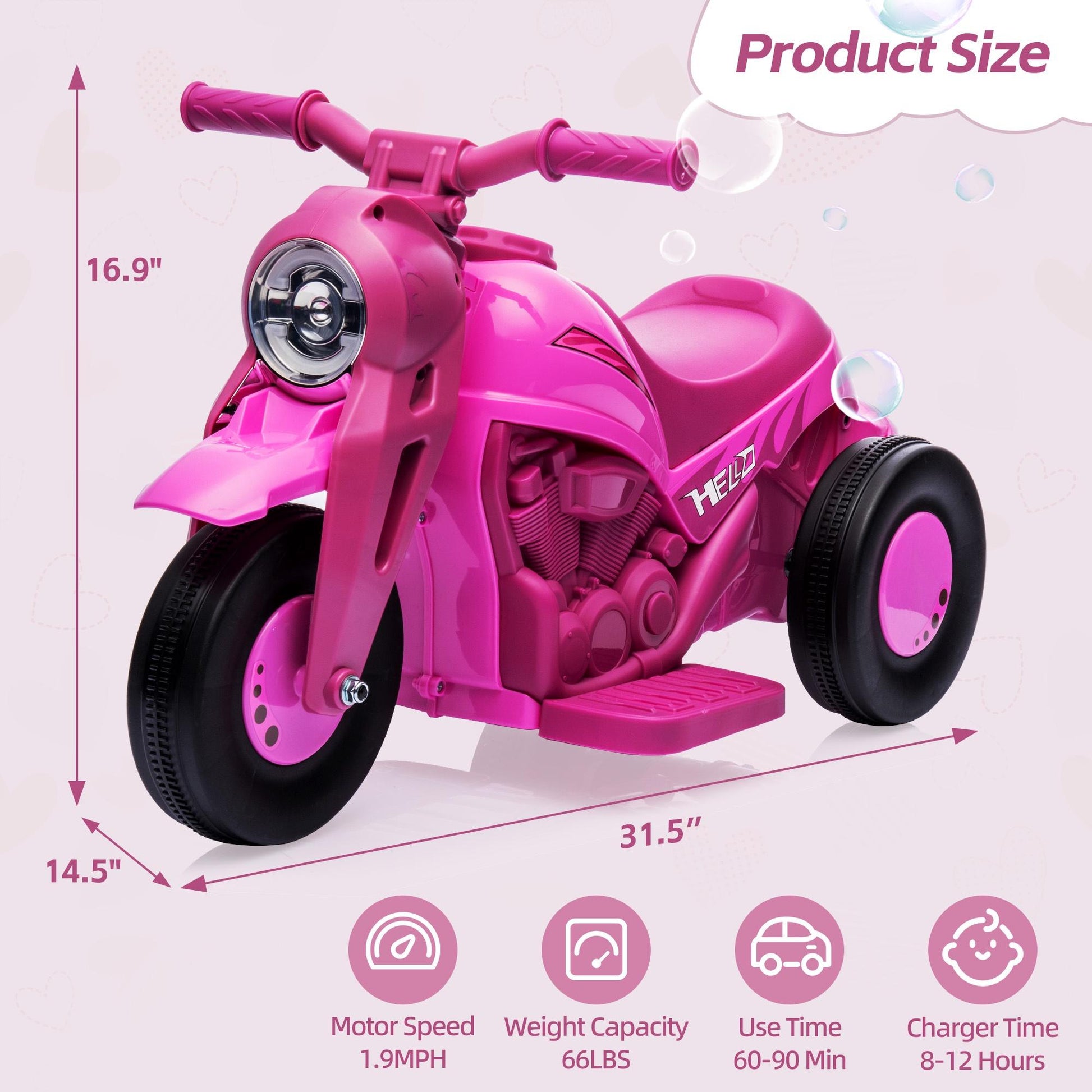 iRerts 6v ride on motorcycle with bubble function bring kids more fun with colorful bubble.