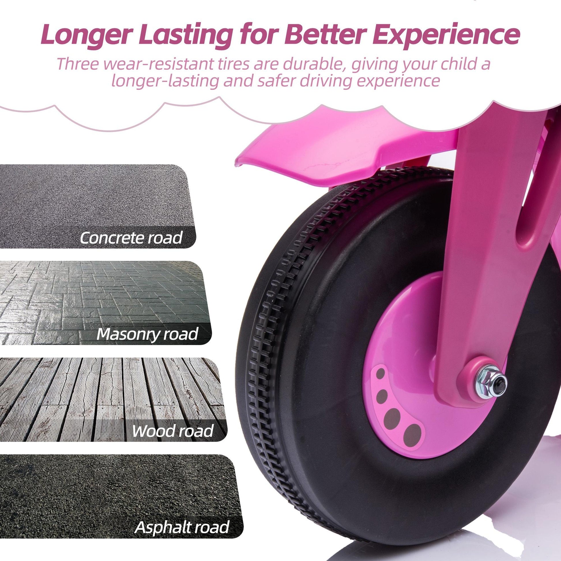 3 wear resistant wheels combine driving stability with durability and are safer for kids.